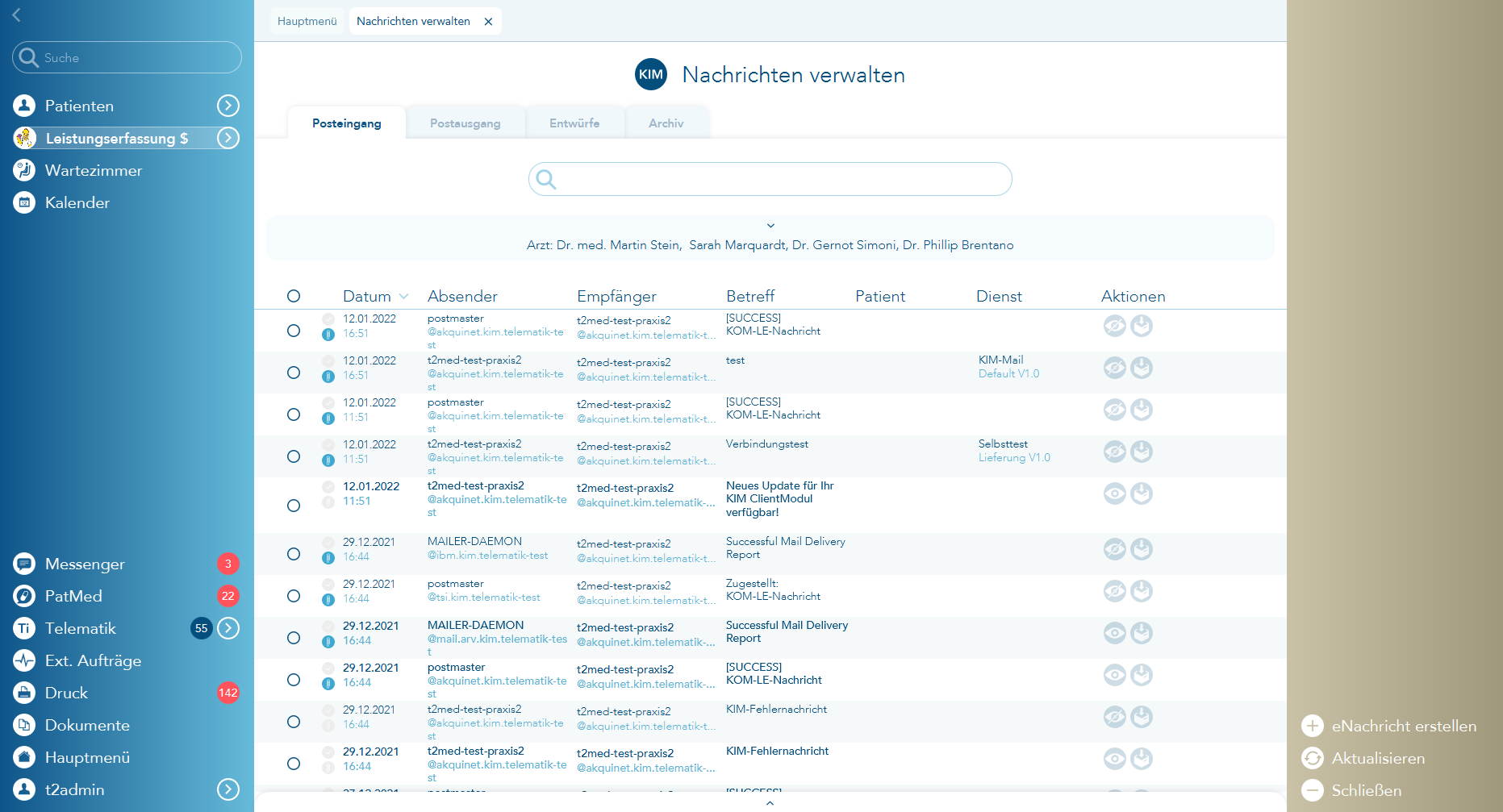 eArztbriefe werden im KIM-Nachrichteneingang empfangen und angezeigt.