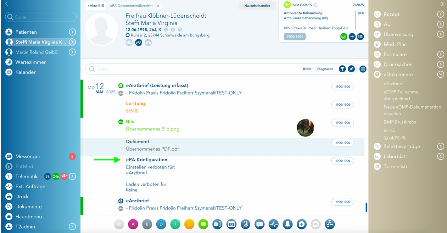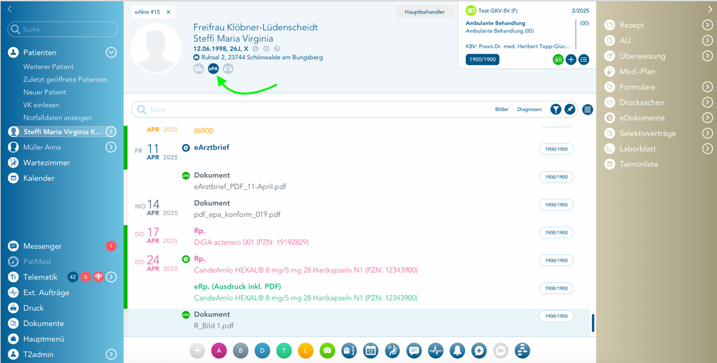 Klicken Sie im Patientenkopf auf das blaue ePA-Symbol.