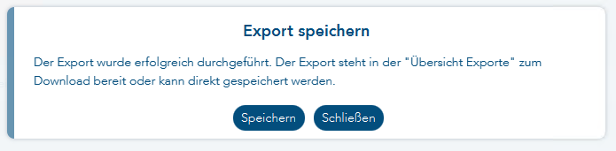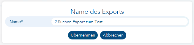 Vergeben Sie einen Namen für den Export und wählen "Übernehmen". Es erscheint der folgende Dialog: