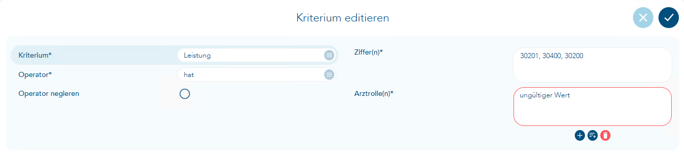 Sie können nun entweder einfach den Wert entfernen, oder Sie tragen stattdessen eine Arztrolle aus Ihrer Praxis ein, die für die Leistungsüberprüfung verwendet werden soll.